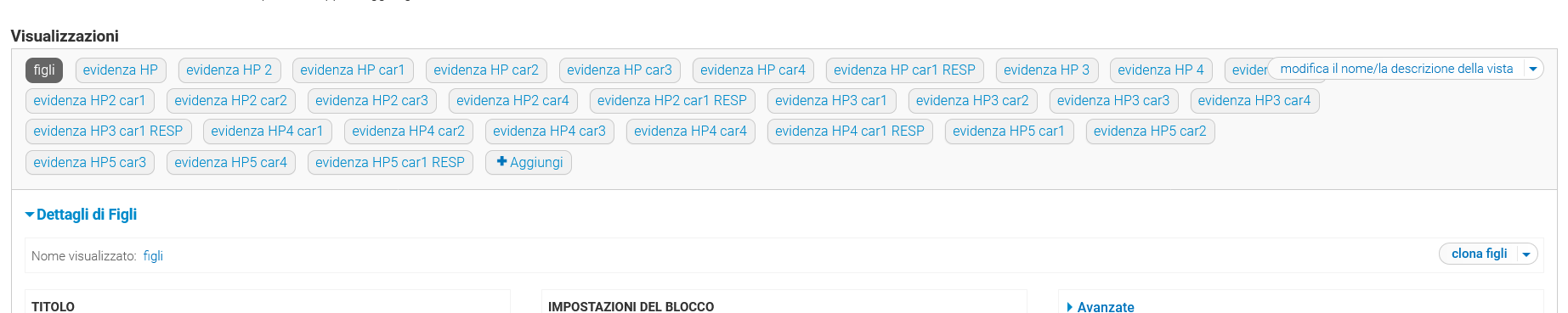 2: nella vista dei blocchi slideshow, in evidenza e figli